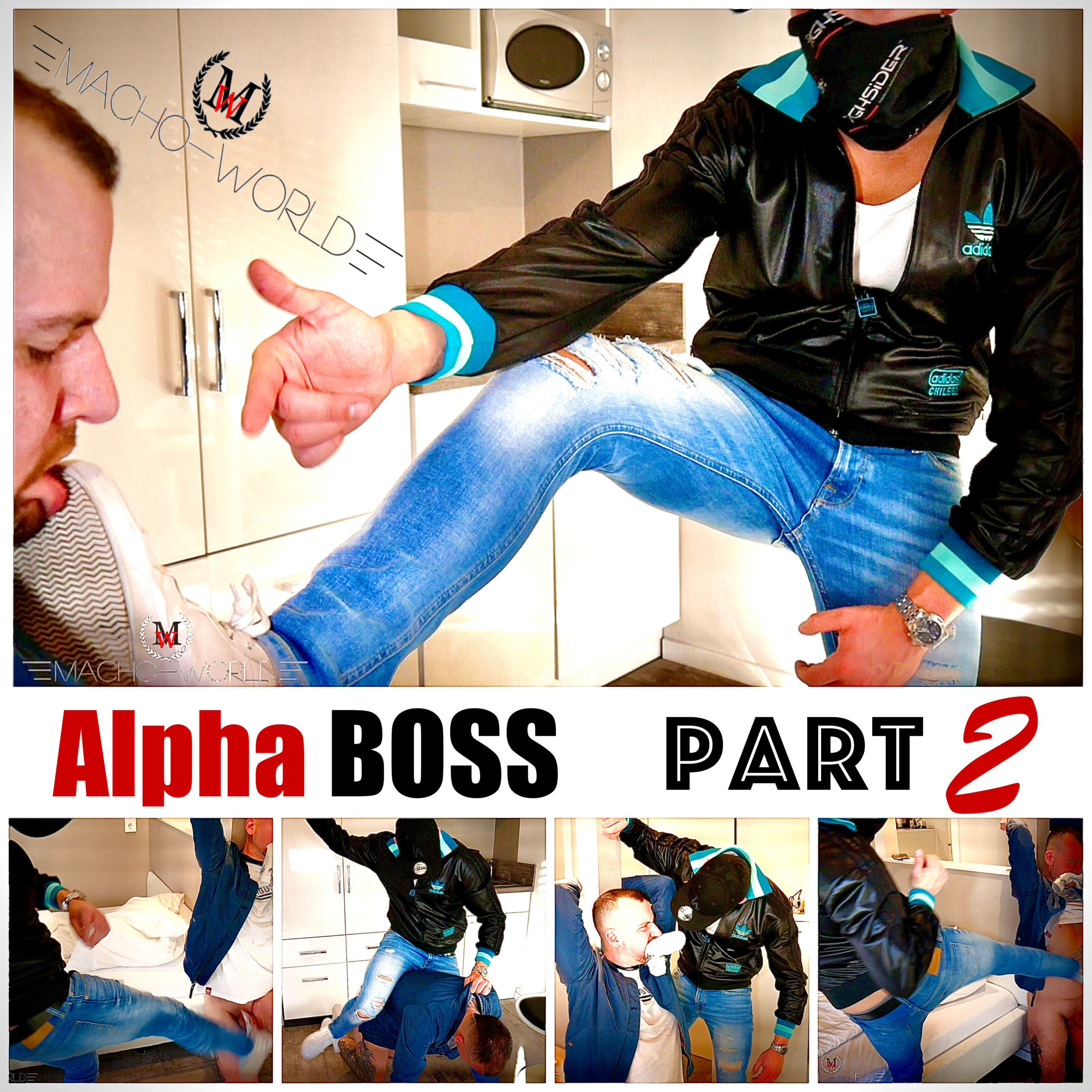 Alpha Boss 2 follows the prequel to Alpha Boss: the gay slave is brutally dominated by a dominant master and forced to lick his spit and endure hard kicks in the balls (CBT). He is brutally dominated and spanked by the dominant master. The slave must endure blows and hard kicks. He is tied up (bondage) and further humiliated, and his nipples are squeezed and nipple play is performed. He is ridden like a dog (DogPlay).